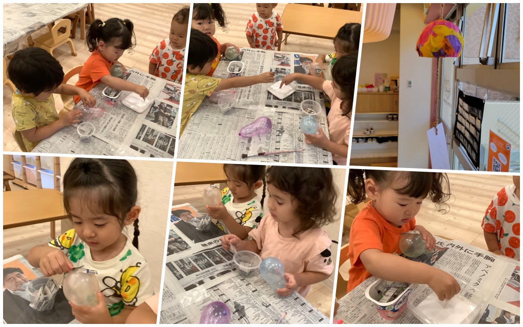 2歳児が7月の製作として張り子の風鈴を作りました。